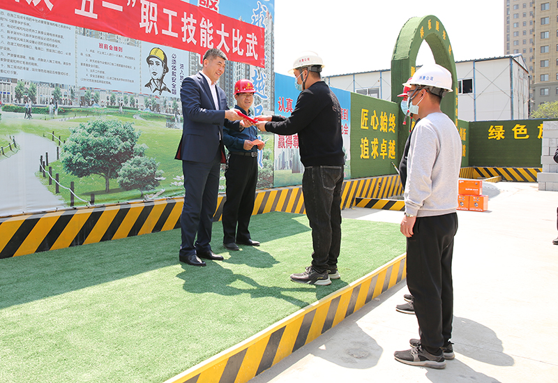 4月28日,集團慶“五一”職工技能大比武活動在滕投悅府項目部舉行。集團副總經理王慎禮宣布比賽規則和獲獎名單,董事長宗成偉為獲獎員工頒獎并作現場點評。