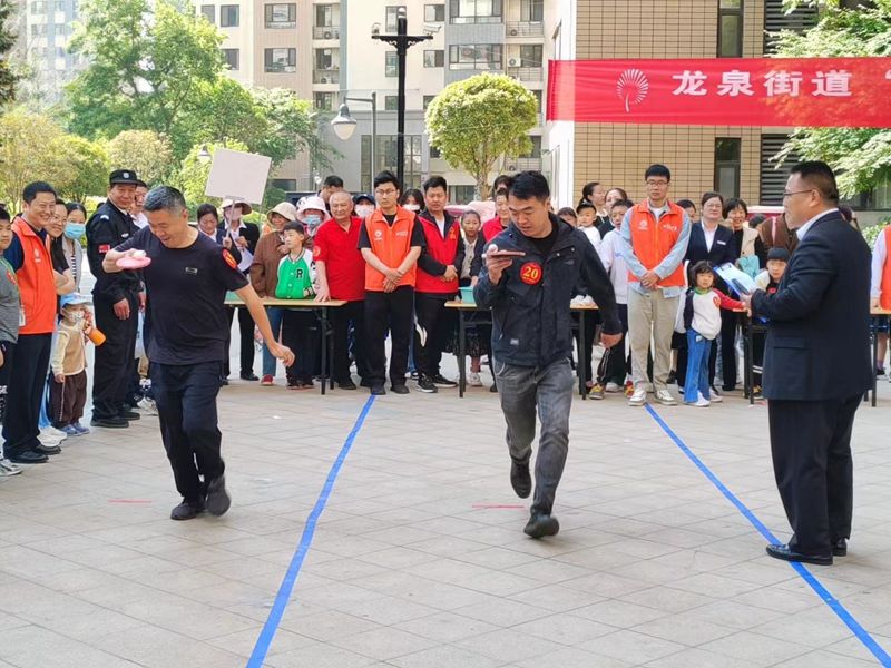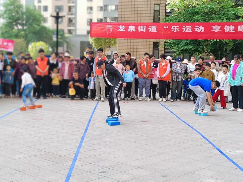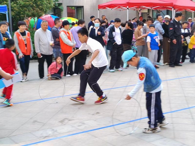 活動(dòng)現(xiàn)場,居民們積極參與,熱情高漲。摸石過河、滾鐵環(huán)、踢毽子、趣味保齡球、拔河等傳統(tǒng)運(yùn)動(dòng)項(xiàng)目不僅考驗(yàn)了參賽者的身體協(xié)調(diào)性和團(tuán)隊(duì)協(xié)作能力,更激發(fā)了大家童年的回憶。同時(shí),現(xiàn)場還設(shè)置了旱地龍舟、運(yùn)轉(zhuǎn)乾坤等親子游戲和才藝展示環(huán)節(jié),為家庭成員提供了共同參與的機(jī)會(huì),增進(jìn)了親子關(guān)系。