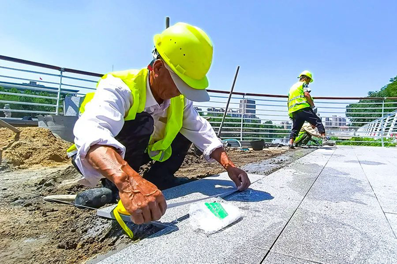 6月3日,在荊河生態(tài)景觀提升工程(龍泉大橋至解放大橋段)施工現(xiàn)場,工人們有的在忙著焊接護(hù)欄,有的在鋪設(shè)地磚,現(xiàn)場一片繁忙景象。荊河生態(tài)景觀提升工程(龍泉大橋至解放大橋段)由滕投集團(tuán)負(fù)責(zé)建設(shè),博誠路橋公司負(fù)責(zé)施工,提升改造的原則對(duì)原景觀采取“低干預(yù)、微改造、精提升”的方式進(jìn)行,主要施工內(nèi)容包括濱河